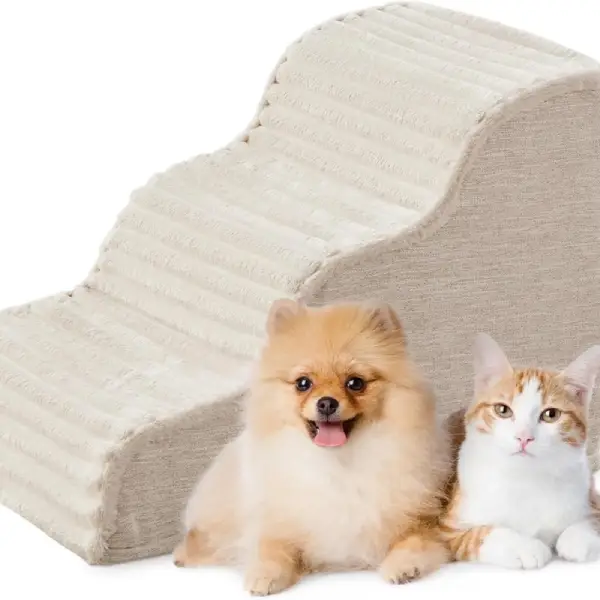 Dog Stairs & Steps – Foam Steps for Small Dogs & Cats, Non-Slip Indoor Balanced Pet Step Support, Dog Ramp, No Assembly, Ash Gray Linen, 2-Step (12-inch Height)